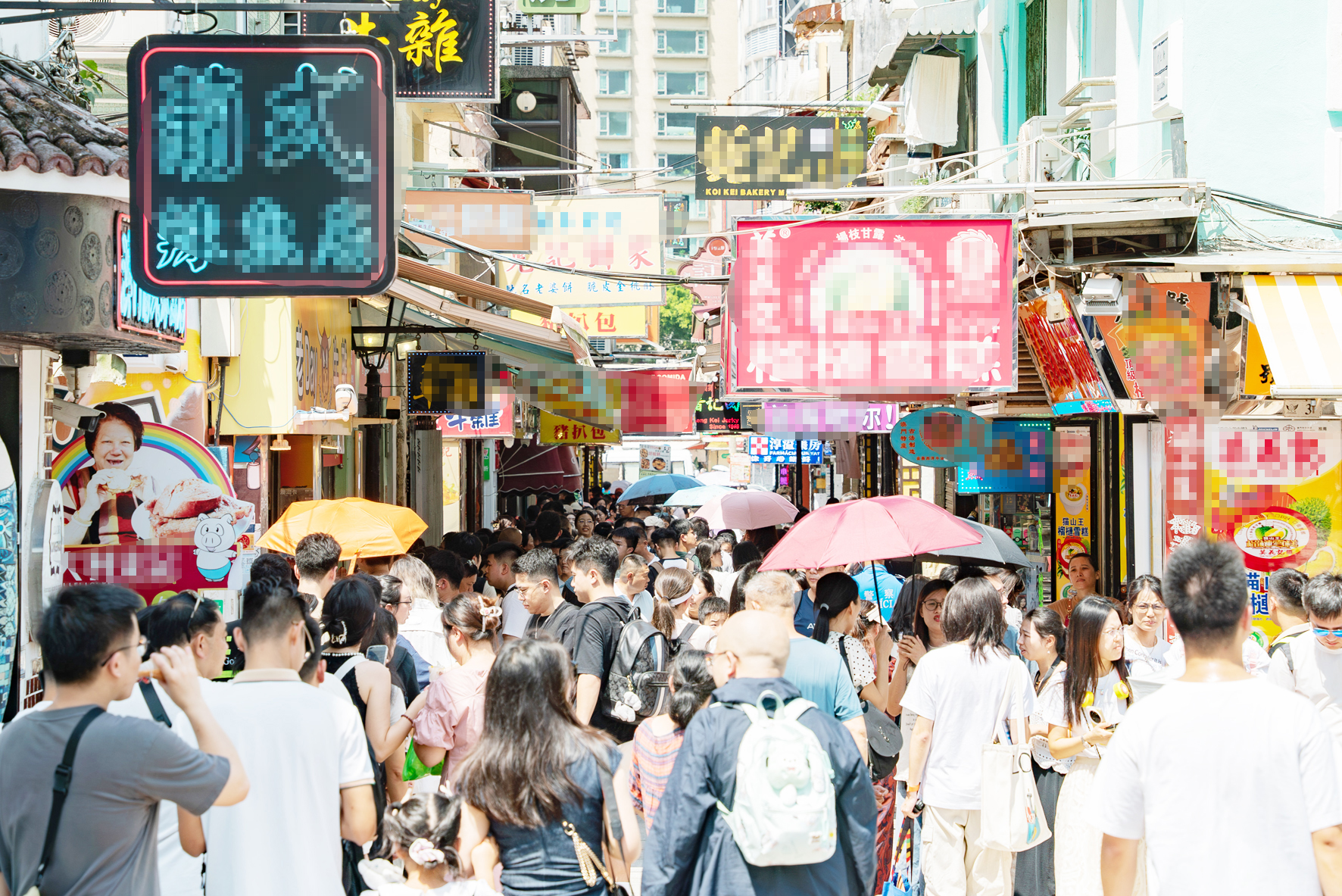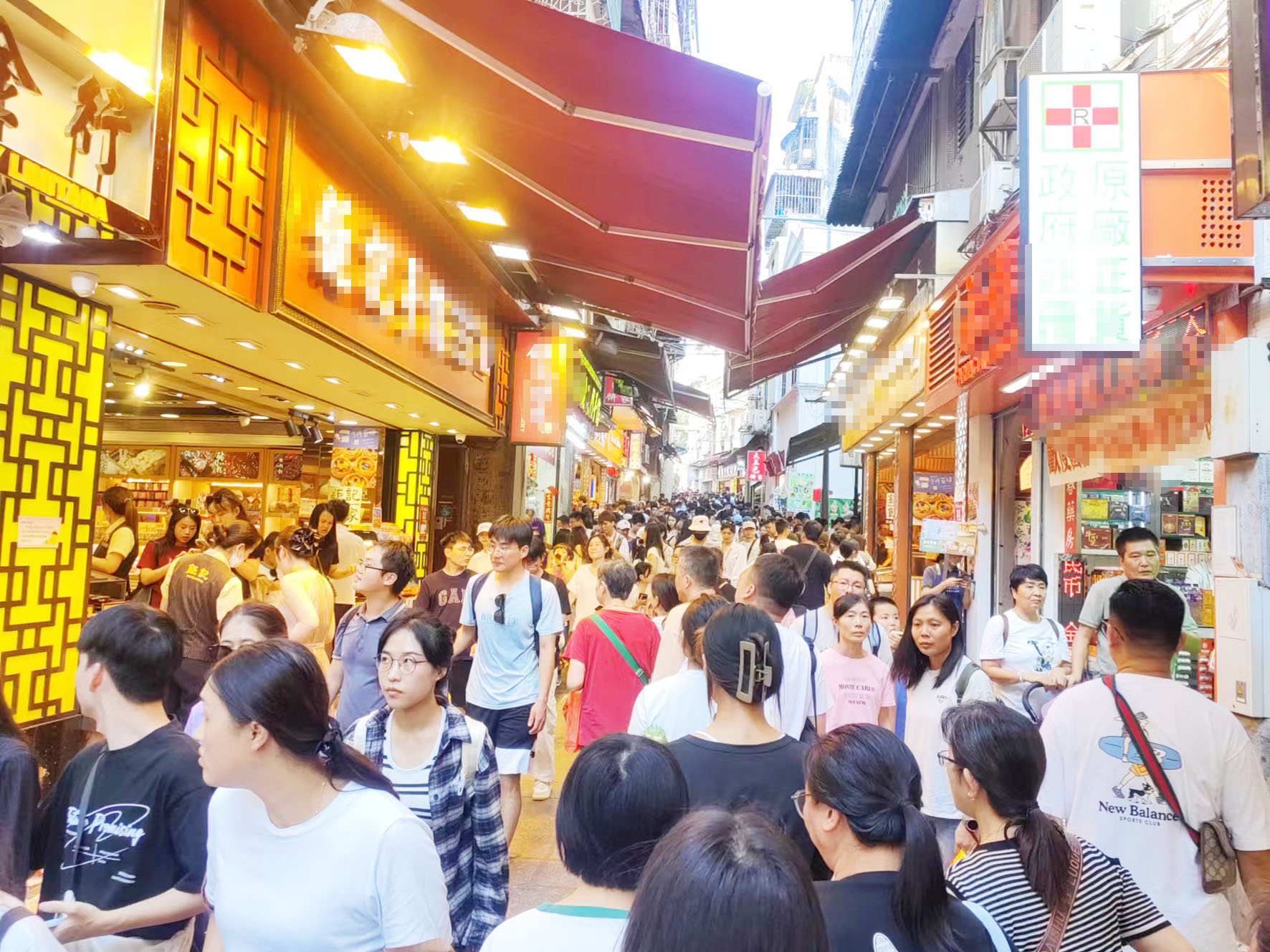 【特訊】內地國慶黃金週假期接近尾聲,仍不少旅客來澳遊玩,旅遊區新馬路及大三巴一帶人流暢旺,手信街人頭湧湧,尤其小食及冰淇淋店生意火爆。有旅遊區商戶表示,國慶假期客流量不俗,旅客消費力一般,近日生意較平日增加約三成。