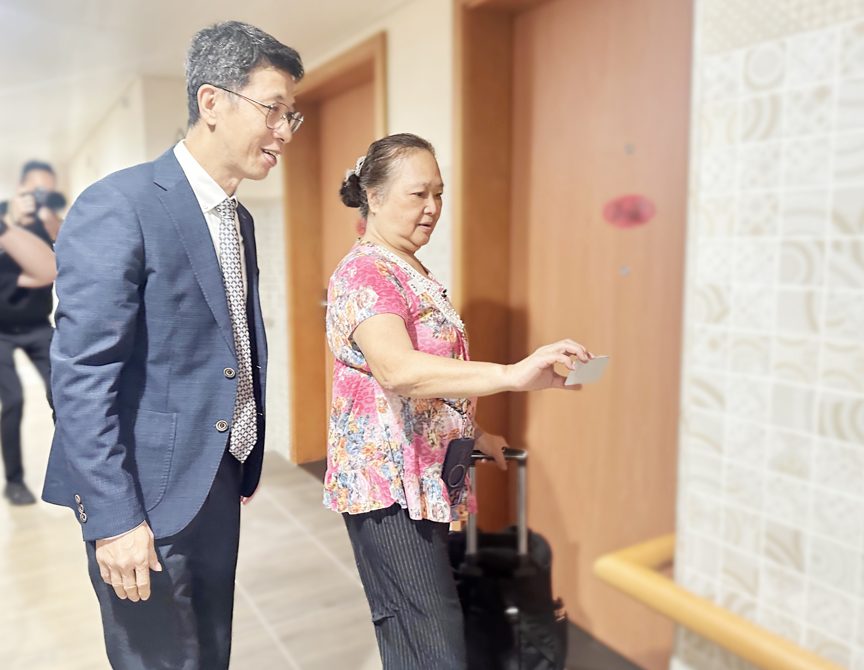 在首日(10月15日),社會工作局共安排了40多名選擇於2024年入住公寓的合資格申請長者(單人申請8宗,雙人申請18宗),在公寓大樓二樓會所簽署使用協議。社會工作局按照相關程序先向長者說明使用協議與內部規章的具體內容,然後派員陪同他們前往已?選的住宿單位,檢查單位環境及其內各項家電、智能科技和其他設備的實際狀況。在檢視及清點無誤後,社會工作局隨即安排長者正式簽署使用協議、繳付保證金和領取鎖匙及電子門咭。長者在完成相關程序後可隨即遷入公寓生活,按照規定,政府長者公寓使用人由簽署使用協議當日起計,共有連續8天的時間獲豁免使用費,方便他們進行各項搬遷和入住安排。首日簽署使用協議的工作進行順利,長者對於能夠入住公寓感到高興,認為特區政府此項長者公寓計劃能夠幫助他們改善居住環境及提高生活質素,解決每日步行上落唐樓的實際困難。