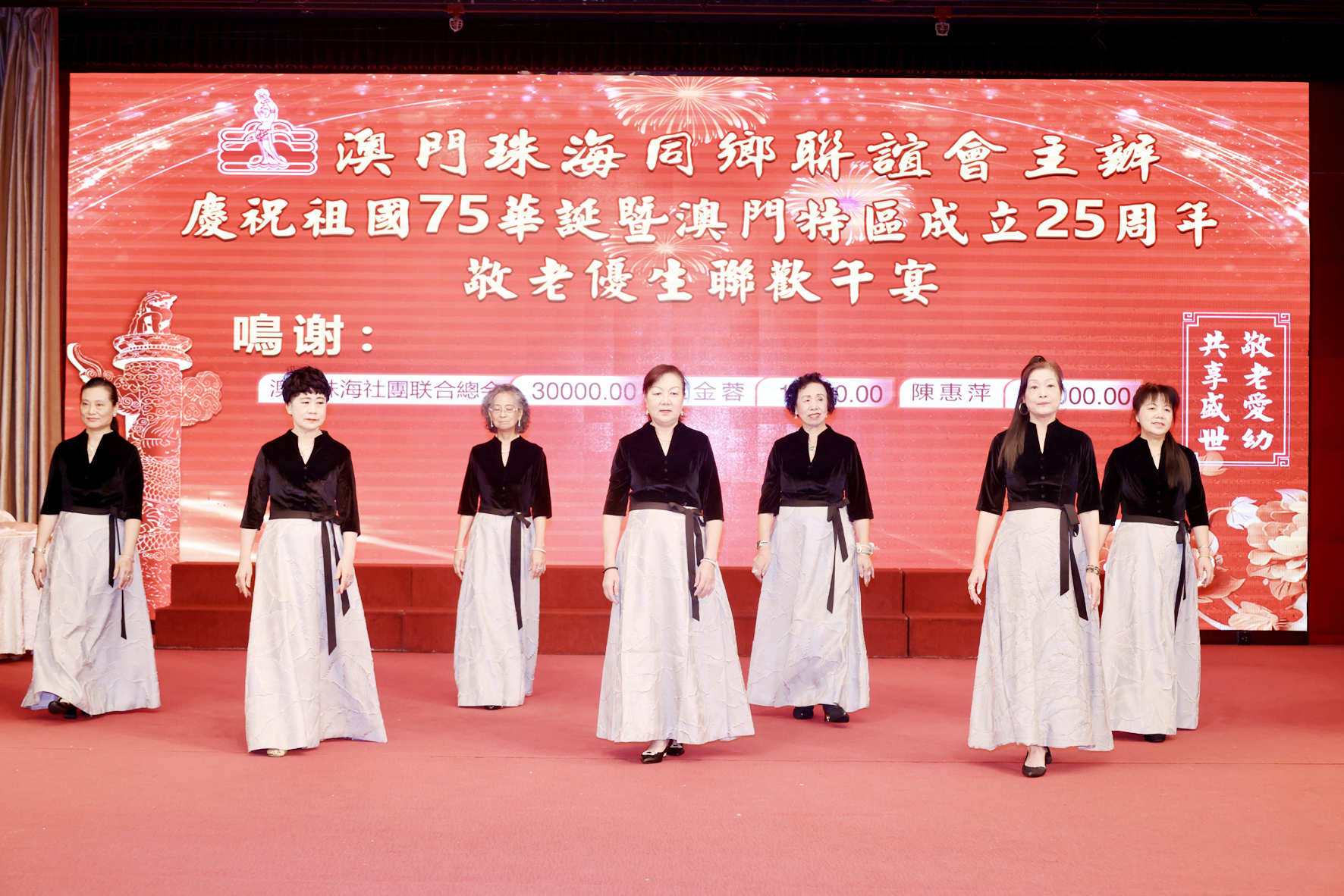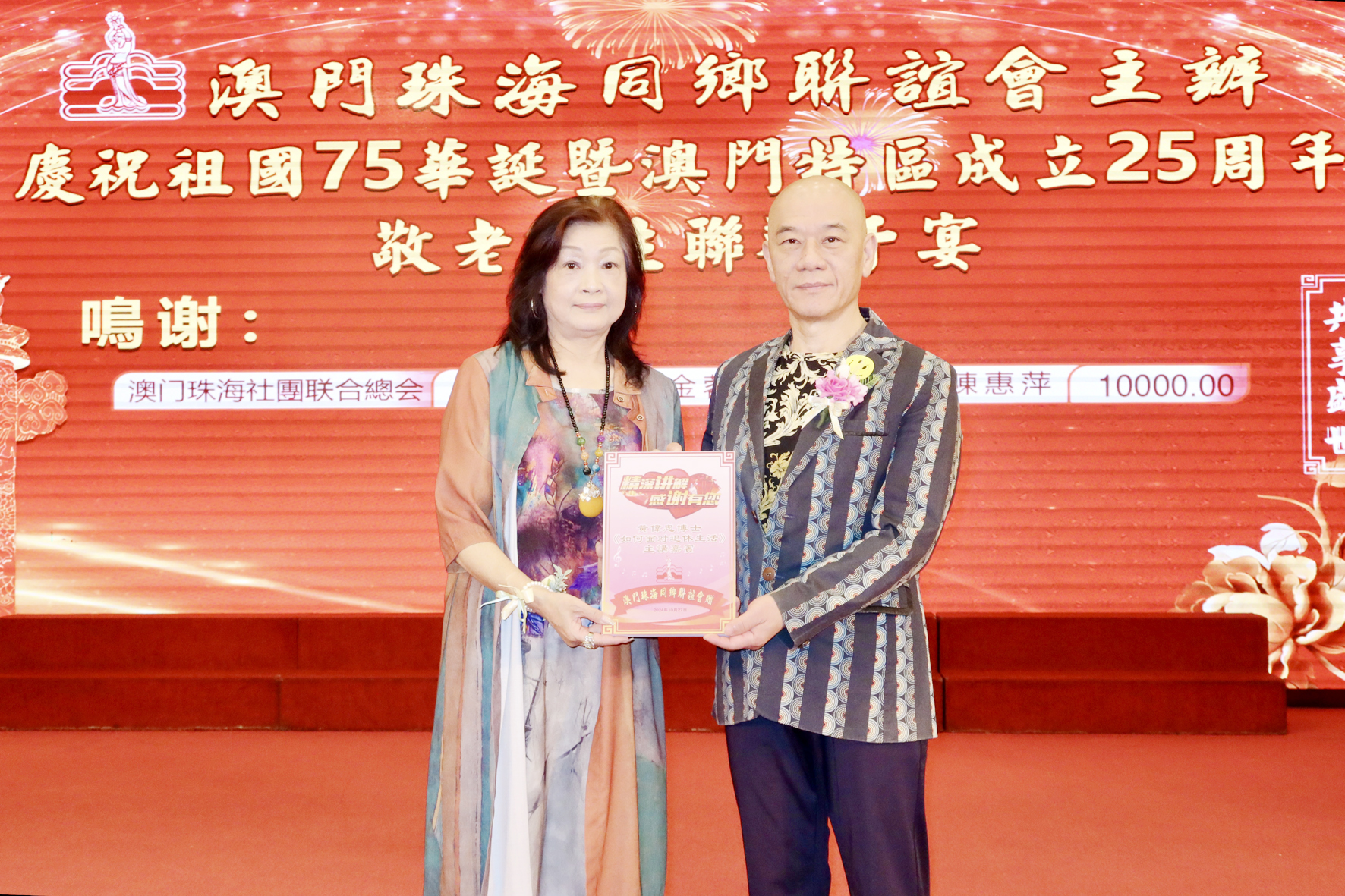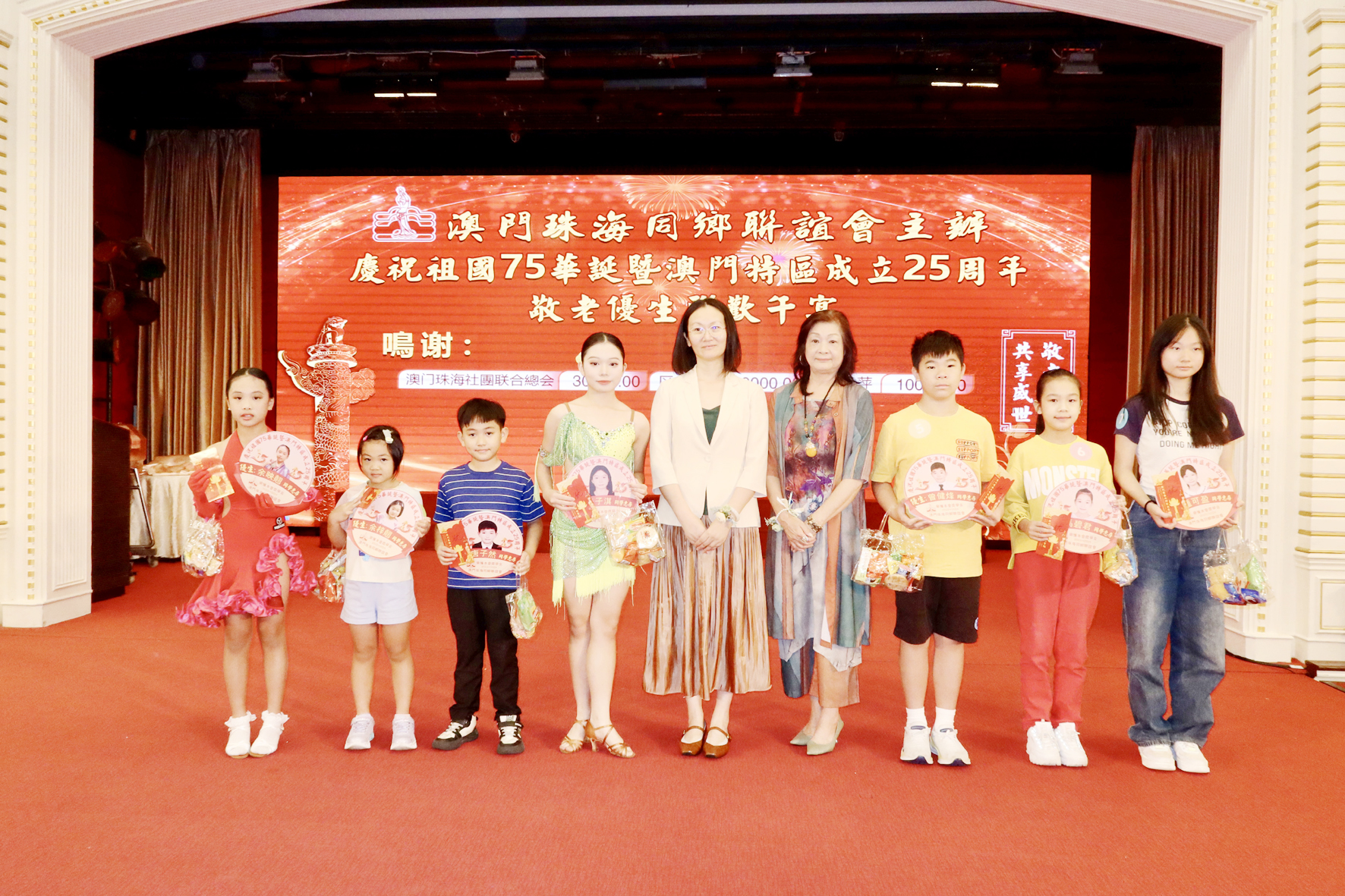 【特訊】澳門珠海同鄉聯誼會主辦之「慶祝祖國75華誕暨澳門特區成立25週年敬老優生聯歡午宴」昨日假萬豪軒舉行,向該會420位65歲及以上長者會員頒贈敬老金,以實際行動傳遞社會關懷,弘揚中華民族敬老尊賢的傳統美德;同時向優秀會員子女頒發獎學金,獲獎學生共有31人,勉勵學生繼續努力求進,學有所成,日後為社會建設獻力。該會負責人表示,同鄉會一直秉承創會宗旨,每年都會組織活動與長者會員暢敘,藉此表達對他們的關懷。