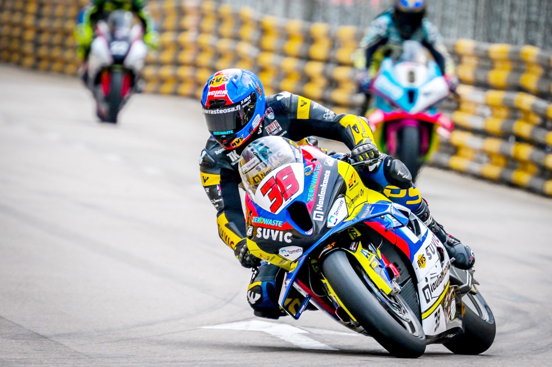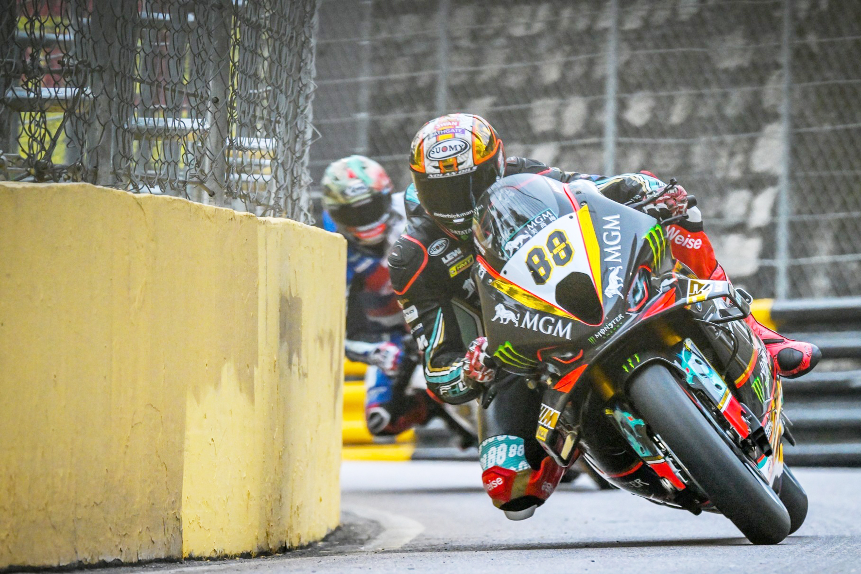 【特訊】第71屆格蘭披治大賽車昨迎來煞科日,重頭戲之一「第56屆澳門格蘭披治電單車」正賽大會原定於昨日上午8時舉行,惟天公不作美,天雨導致賽道濕滑,大會在考慮安全因素的情況,取消有關比賽,最終成績按照排位賽決定,即25號英國車手陶德位列首位,38號芬蘭車手哥達摩排第二,上屆冠軍、88號英國車手赫爾文第三。