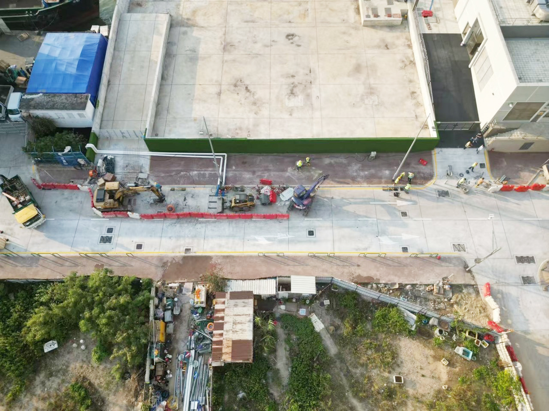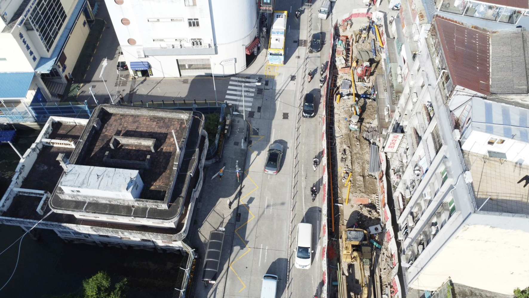 工程共分三期進行,繼第一期工程已於2024年7月完工後,第二期工程已基本完工及於2024年12月6日進行了臨時接收,河邊新街原來的行車線已恢復通車,後續對雨水箱涵渠內部進行清理、檢測及工程移交工作,期間仍需局部佔用河邊新街及比厘喇馬忌士街進行下水道截流,以便進行箱涵渠的清理及檢測工作。內港南工程整體至今已完成約80%,當中雨水箱涵渠已完成約996米,佔總長約90%。目前,第三期工程正按計劃全力推進,繼續在河邊新街、比厘喇馬忌士街及火船頭街進行污水泵站、雨水箱涵渠、下水道及道路工程施工。其中,雨水箱涵渠樁基礎已於2024年11月全部完成,餘下最後兩段分別位於比厘喇馬忌士街7號碼頭及司打口前地的箱涵正在進行基坑支護及開挖工作,預計於2025年3月完成全部箱涵結構,隨後將進行路面恢復和支渠的接駁等工作,第三期工程預計於2025年6月完工。