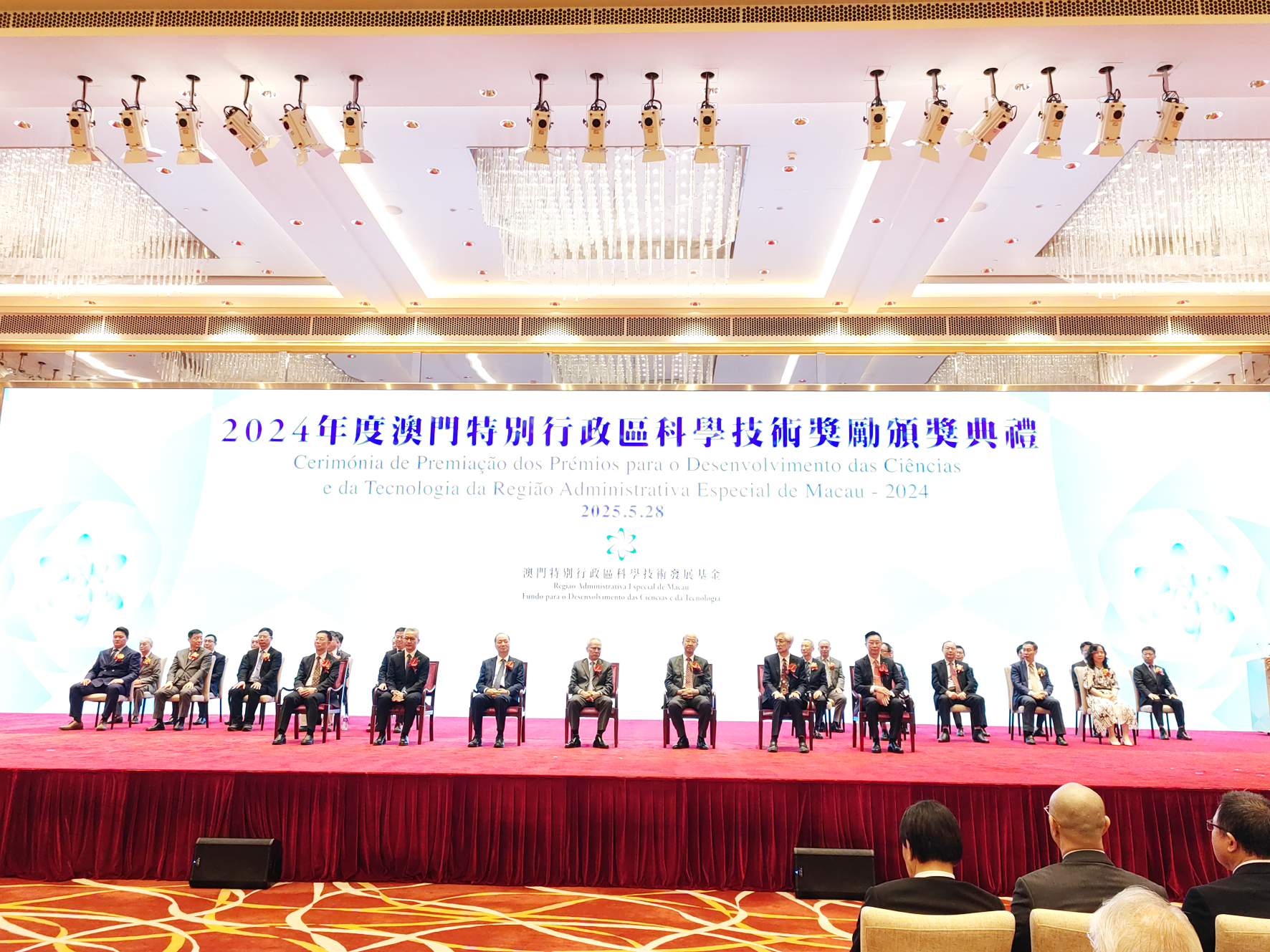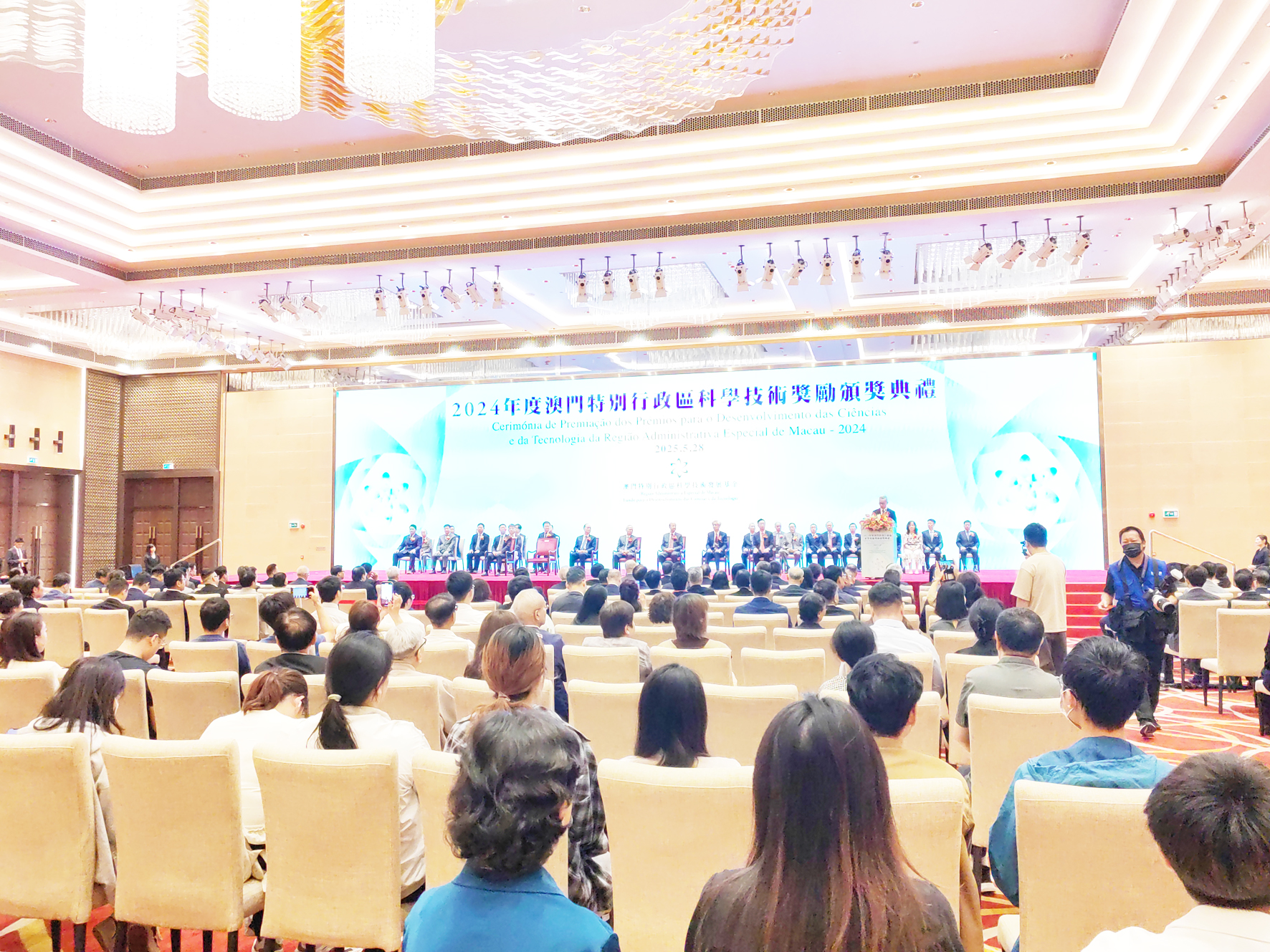 【特訊】科技發展基金主辦的2024年度澳門科學技術獎勵頒獎典禮昨日下午三時假中國與葡語國家商貿合作服務平台綜合體會議東廳舉行,本屆有22個科學技術獎項目分別獲頒自然科學獎、技術發明獎和科技進步獎;獲獎的科技工作者共83人,當中包括30名研究生。科學技術發展基金行政委員會主席謝永強以及澳門科學技術獎評審專家代表等,出席並為科學技術獎勵獲獎者頒獎。國家科技部、廣東省科學技術廳、珠海市科技創新局、本澳政府部門、高等院校及科技團體等300多名代表出席頒獎典禮。
