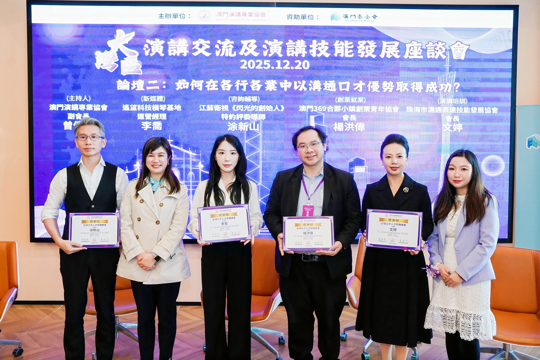 【特訊】由澳門演講專業協會主辦、澳門基金會資助的「大灣區演講交流及演講技能發展座談會」日前在橫琴金匯國際廣場德道職業培訓學校圓滿落幕,活動吸引近200名業界人士參與。座談會中包含兩大論壇,聚焦大灣區人才融合與行業競爭力。