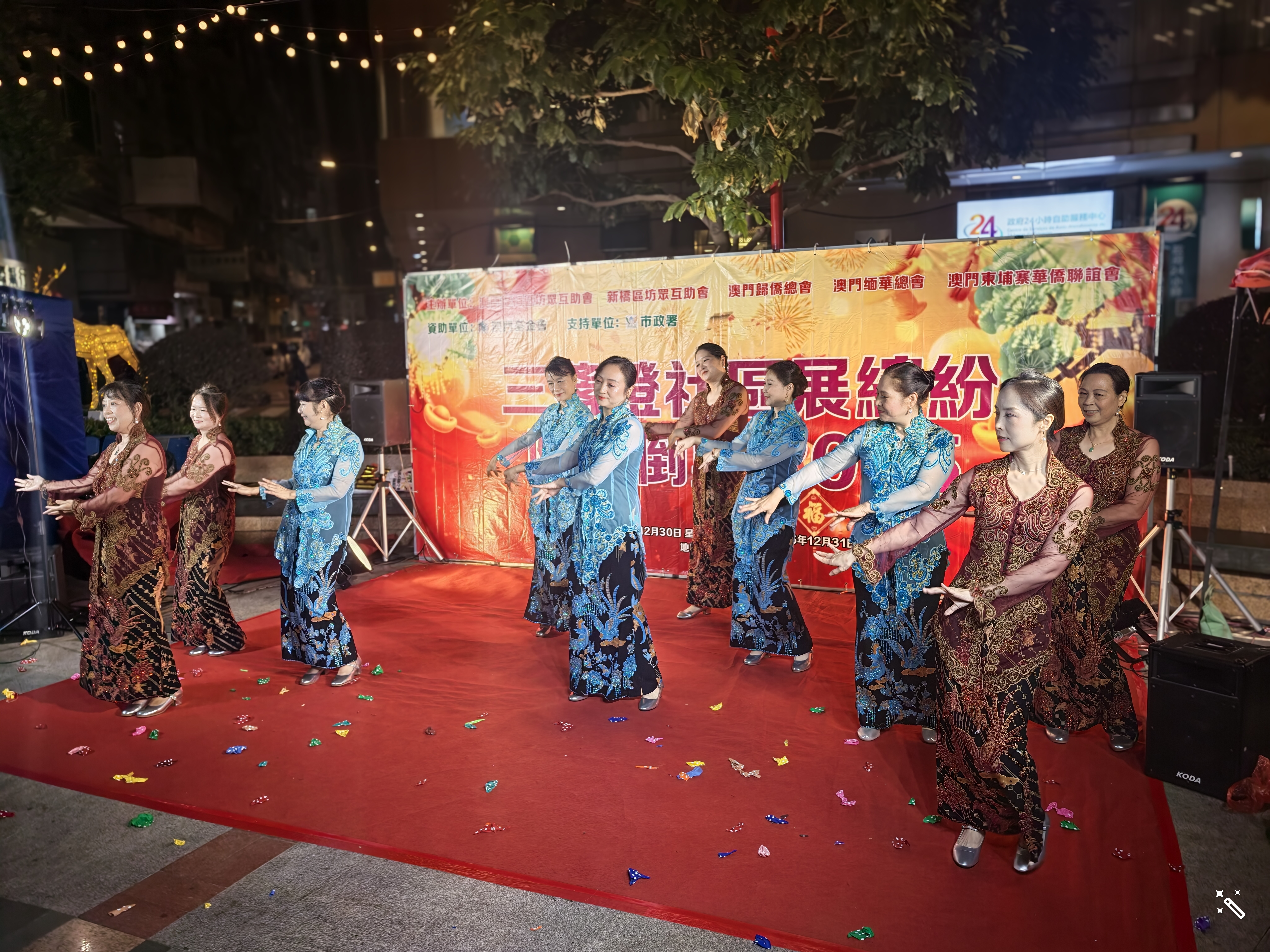 與此同時,文化局昨晚9時至凌晨0時15分在龍環葡韻舉行舉辦「2025氹仔除夕倒數晚會」,以多元文化共融為主軸。演出由香港歌手湯寶如壓軸,獻唱經典歌曲,並有本地及居澳藝團帶來印度、菲律賓、緬甸、越南等傳統與現代歌舞表演。現場於晚上8時30分至十一時半,設有居澳菲律賓、印度、緬甸及越南社群文化攤位,展示充滿異國風情的當地傳統服飾、旅遊資訊、地道小食及飲品,濃郁的多元文化氛圍讓參與者流連忘返。