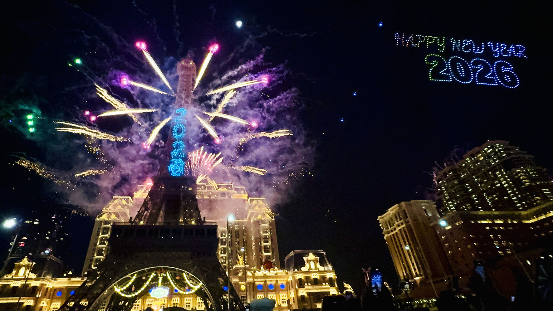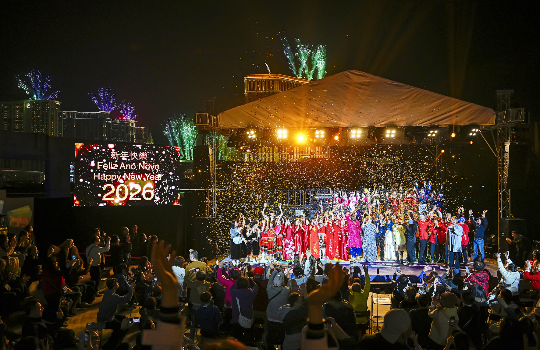 【特訊】昨晚除夕夜,辭舊迎新,特區政府和社團分別在本澳多處舉行豐富多彩的跨年倒數晚會活動,吸引數以萬計市民及旅客外出參與;踏入2026年一刻,全城載歌載舞,祝賀聲此起彼落,在歡欣喜悅中迎來充滿美好希望的新一年。