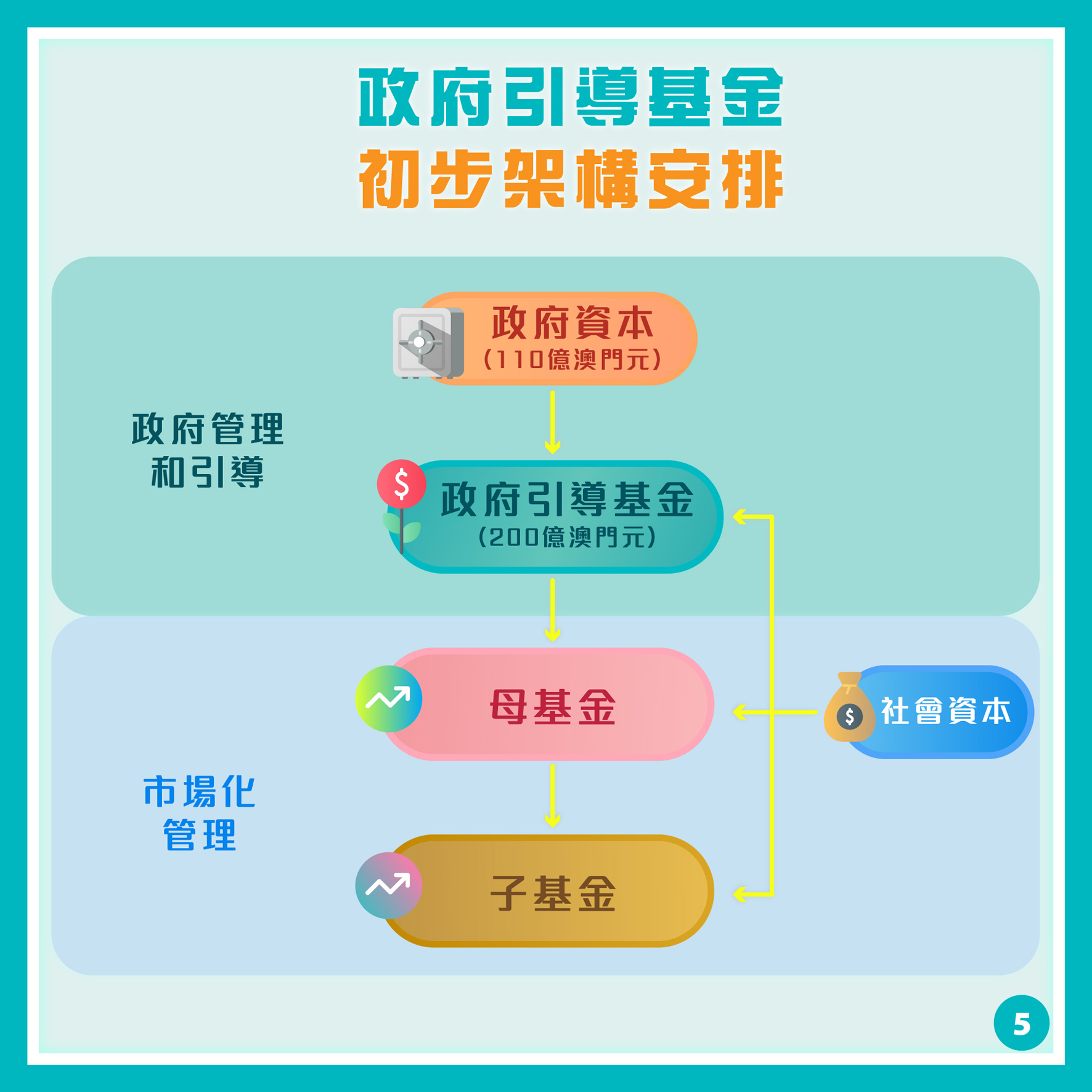 【特訊】政府計劃將於年內設立政府引導基金,以財政儲備歷年滾存收益向基金注資,初步計劃以財政儲備歷年滾存的收益向基金注資110億澳門元,聯同首批社會資本設立引導基金,預期引導基金規模為200億澳門元期望發揮引領作用,藉此匯集和引導社會資本參與投資重點產業和項目,紮實推動經濟適度多元發展、培育新興產業、推動產業升級、支持科技成果轉化及初創科技企業發展,從而促進本地就業與人才發展,創造更多優質就業職位,促進多元的就業結構,惠及本澳企業和居民。