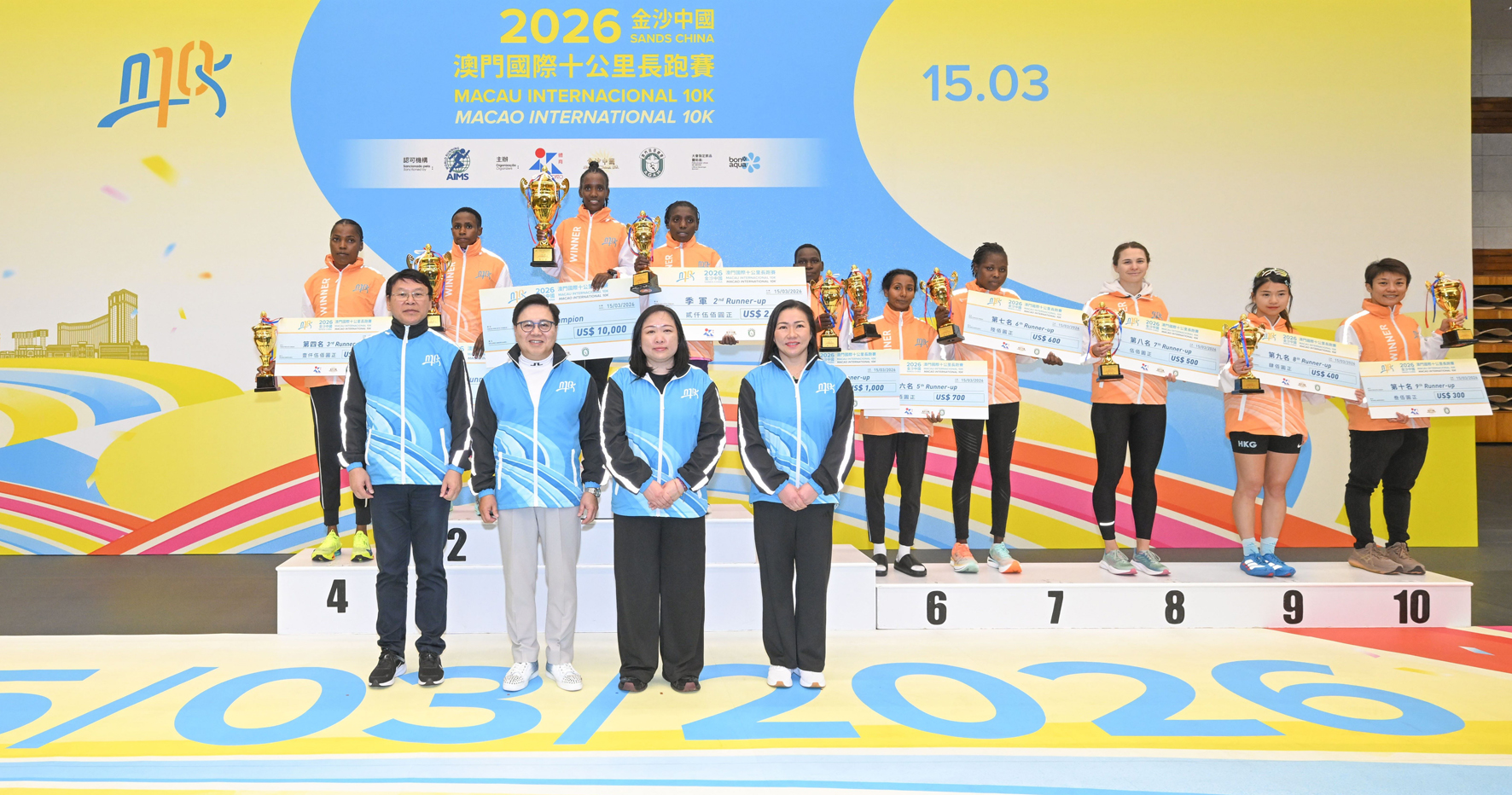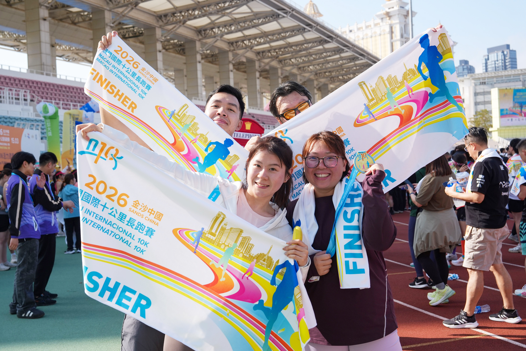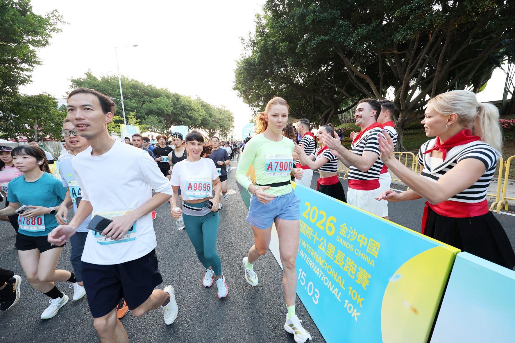 【特訊】由體育局、金沙中國有限公司及澳門田徑總會聯合舉辦的「2026金沙中國澳門國際十公里長跑賽」於昨日順利舉行。賽事分設十公里競賽與歡樂跑兩個組別,分別於上午7時、7時40分鳴槍起跑,來自世界各地的跑者齊聚西灣湖廣場,以步伐丈量城市風光,用熱情點燃體育氛圍,展現澳門健康向上、中西交融的獨特魅力。