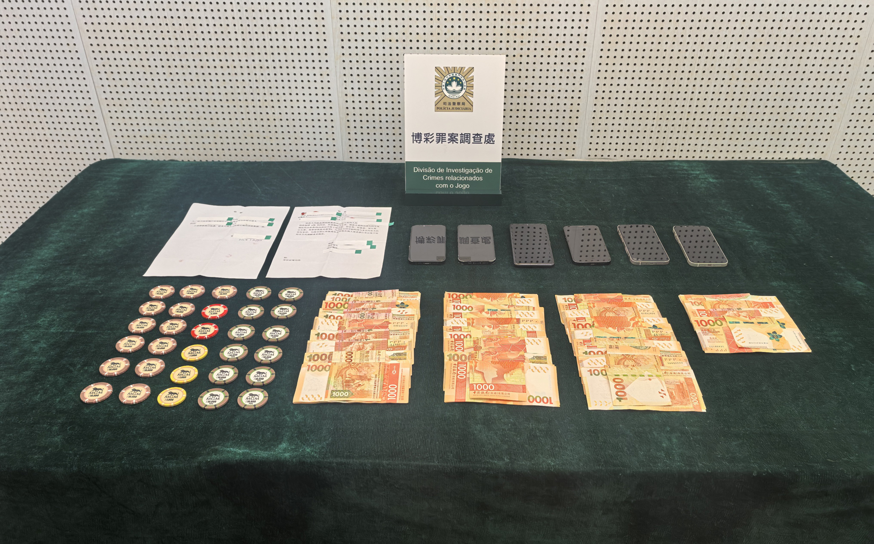行動中,警方在五名嫌疑人身上查獲34萬港元現金、20.3萬港元籌碼、6部手機、1張借據及1張收據。經調查確認,五人涉嫌非法放貸及參與不法賭博活動,全部被依法拘捕,案件已移送檢察院偵辦。