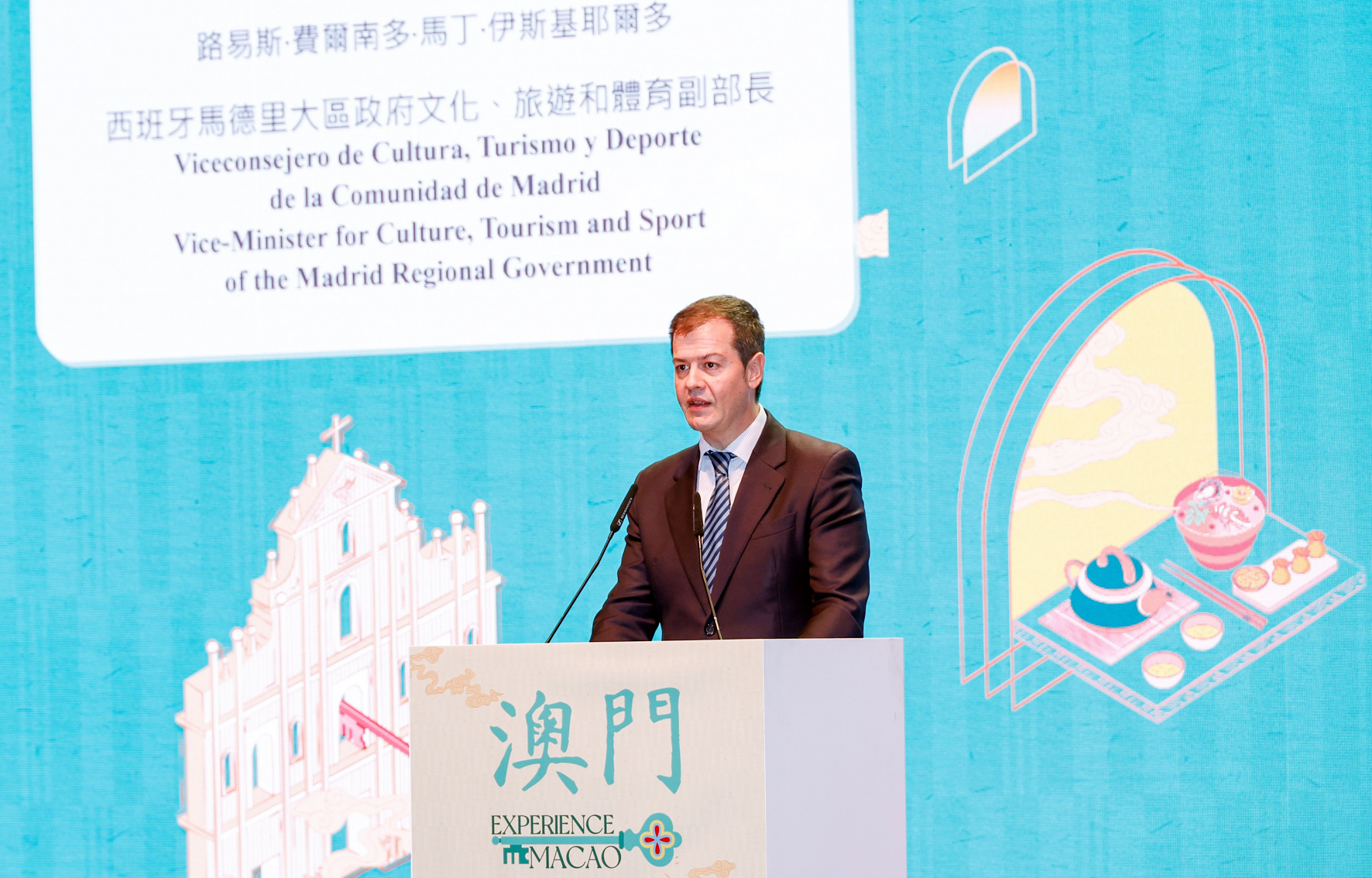 西班牙馬德里大區政府文化、旅遊和體育副部長路易斯‧費爾南多‧馬丁‧伊斯基耶爾多向澳門特區政府致以祝賀,路展讓更多馬德里市民認識澳門這一全球獨具魅力的旅遊目的地。馬德里亦歡迎澳門居民前來感受城市歷史遺產、文化魅力、特色美食與獨一無二的生活方式。